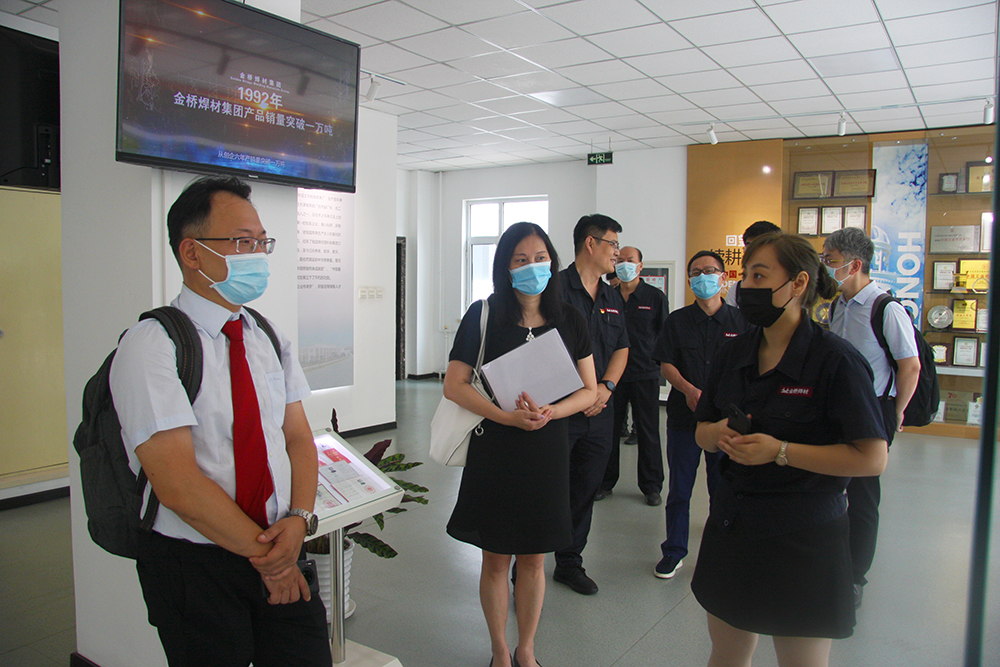 簽約儀式開始前,肖副總陪同童彥君總經(jīng)理一行參觀了集團理化實驗室、高速鍍車間、焊接培訓基地及企業(yè)展廳,詳細了解了金橋焊材集團的發(fā)展情況、生產(chǎn)布局及工藝。童彥君總經(jīng)理表示,對侯立尊老總的家國情懷、創(chuàng)業(yè)事跡深感敬佩,也對金橋焊材集團不忘初心,專注本業(yè)的戰(zhàn)略規(guī)劃給予高度贊揚。