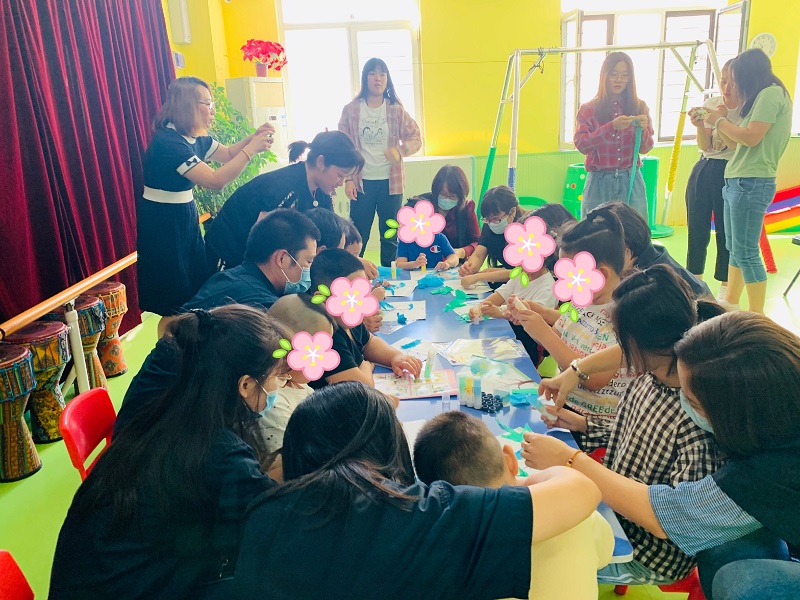 活動(dòng)現(xiàn)場(chǎng),愛晶園的劉園長(zhǎng)介紹了園內(nèi)特殊教育兒童的基本情況,并帶大家參觀了兒童發(fā)展中心,走訪班級(jí)看望孩子們。金橋支部贈(zèng)送了四套實(shí)木桌椅和四大箱兒童教具,用來(lái)豐富孩子們的學(xué)習(xí)生活。因?yàn)楣陋?dú)癥的孩子們需要更多的陪伴,黨員同志們和基金會(huì)領(lǐng)導(dǎo)與愛晶園的寶貝們共同制作了創(chuàng)意手工,希望孩子們?cè)趷坌牡臐补嘞?,能夠像小樹一樣,更加健康茁壯地成長(zhǎng)!