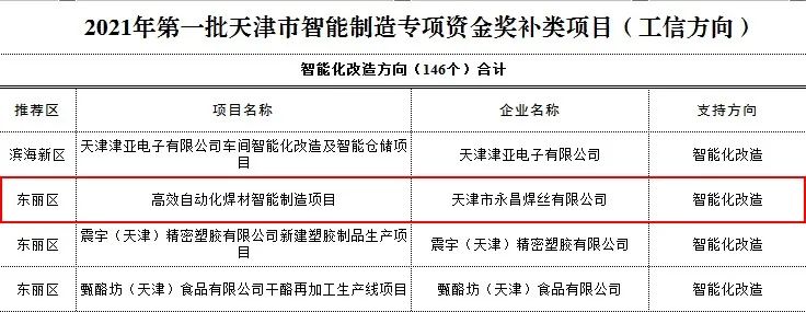 金橋焊材集團(tuán)三項(xiàng)綠色智能方案入選2021年天津市首批智能制造專(zhuān)項(xiàng)資金項(xiàng)目