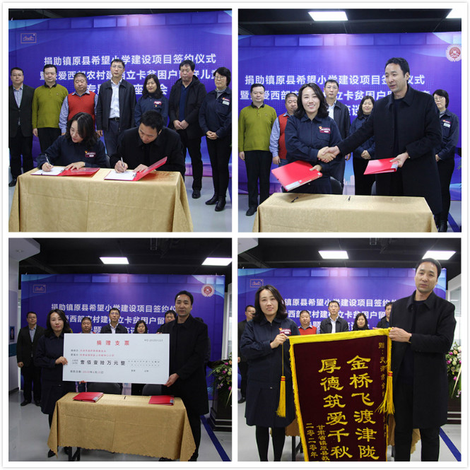 1月10日,捐助鎮(zhèn)原縣希望小學(xué)建設(shè)項(xiàng)目簽約儀式,暨關(guān)愛西部農(nóng)村建檔立卡貧困戶留守兒童專題座談會(huì)在金橋焊接培訓(xùn)基地圓滿召開。活動(dòng)由集團(tuán)黨委副書記、金橋慈善基金會(huì)秘書長李紅梅主持。
